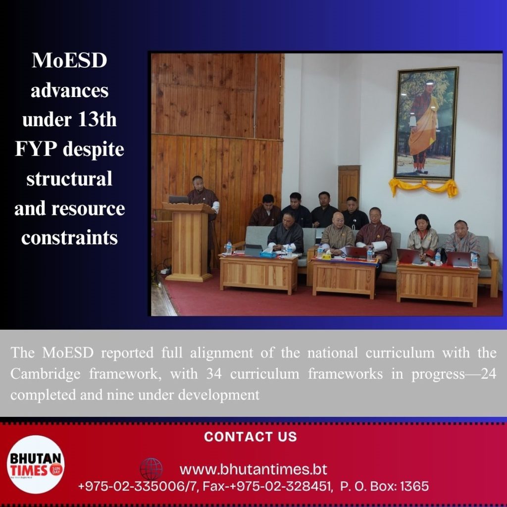 The Ministry of Education and Skills Development (MoESD) has reported a mix of progress and implementation challenges under the 13th Five-Year Plan (13th FYP), according to updates presented at a mid-term review meeting chaired by Prime Minister Tshering Tobgay.